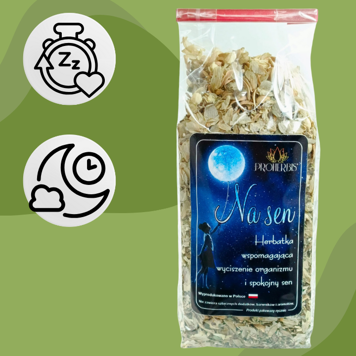 Herbatka Na Sen to starannie skomponowana mieszanka ziół wspomagających relaksację organizmu i poprawę jakości snu. Zawiera melisę, męczennicę, szyszki chmielu, kocimiętkę, kwiat pomarańczy i jaśmin – składniki znane od wieków z właściwości uspokajających i wyciszających.